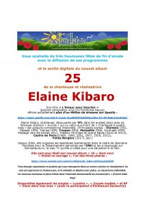 Elaine Kibaro a créé l’Association Orian pour une éducation à la Paix dès le plus jeune âge et a organisé des séries de représentations destinées au jeune public depuis 1994, puis a commencé à aller dans les écoles diffuser ses DVD/CD de contes musicaux « Les Contes de la Licorne », « Dans la Forêt », « Tata Noël » aux enfants qui n’ont jamais accès aux spectacles afin d’engager un dialogue avec eux. Le film qu’elle a réalisé pour tous les publics en 2010 « Ces phrases qui ont changé ma vie » en est un des aspects.