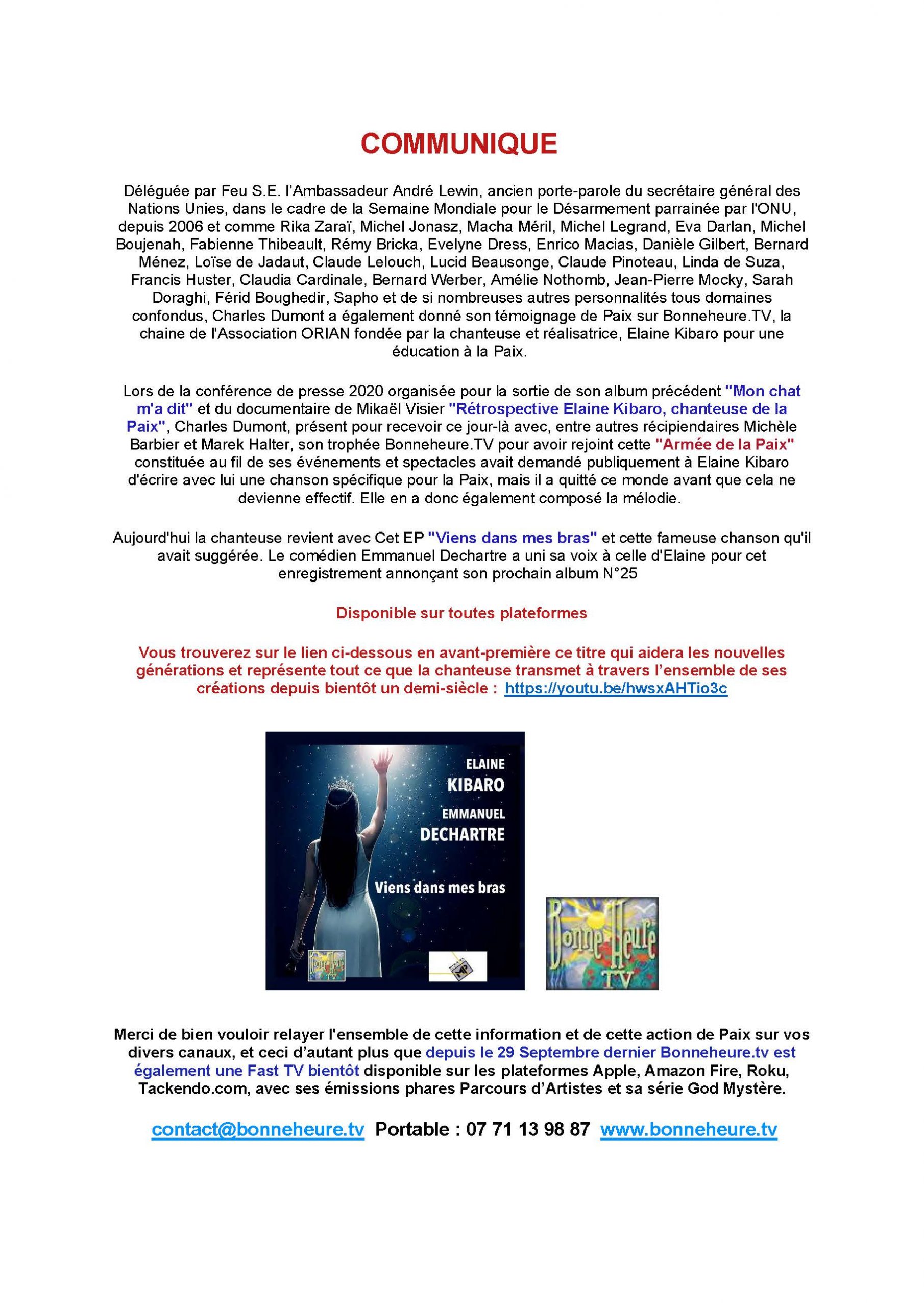 la chaine créée par la chanteuse et réalisatrice pour une éducation à la Paix, avec la présentation de ses programmes et extraits de ses séries et films essentiels multi diffusés sur Vià Grand Paris (Télif) et Demain TV, la diffusion de clips ou extraits de ses nouveaux CD/DVD et livres et la remise des Trophées de la Paix 2025 à de nombreuses personnalités